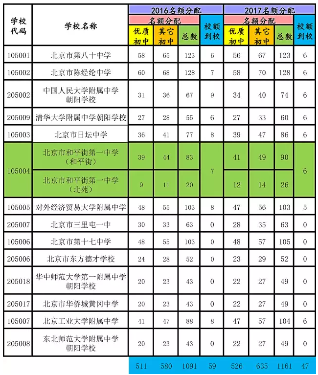 整体来看,朝阳区的名额分配,无论是优质校还是普通校,均有不同程度的增加,小编简单算了下总数,优质校招生计划由511增加到526,增加15人,普通校招生计划由580增加到635,增加55人。这对于朝阳区的考生来说,通过名额分配进入优质高中的机会大大增加。对于优质校一模排名在1600-2000的考生,普通校排名在2000-2500的学生,今年中考再进一步,便有希望通过名额分配进入优质高中。