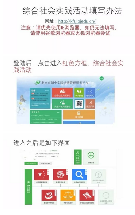 北京市初中综合社会实践活动网上填写办法
