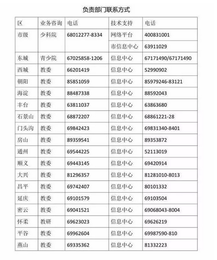 附:北京市各区教委负责部门电话
