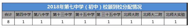 举例说明:2018年第七中学有8个校额到校名额,分别分配到北京四中、北京八、北师大附等高中校1个名额,所以,北京七中的前8名具有名额分配资格的考生最有机会进入这些优质高中。