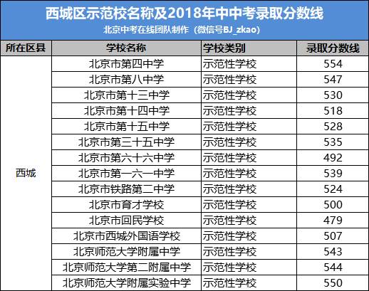 为了帮助2019考生更好的朝着自己的目标努力,北京中考在线特别整理了2018年西城区示范校的录取分数和招生途径,供参考。