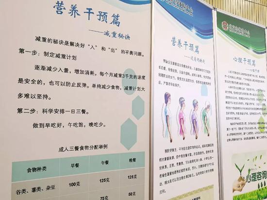 体检中心在健康科普常识展板上宣传各种健康干预知识。