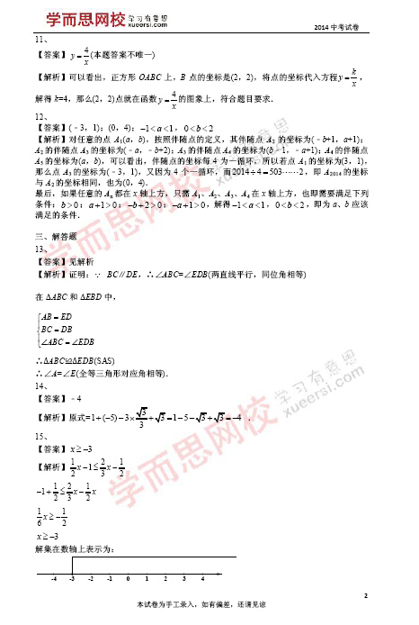 学而思网校名师:2014北京中考数学试题答案解析(2)