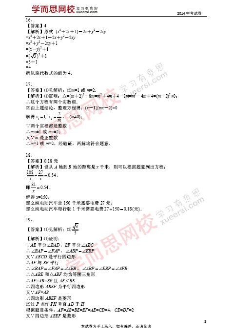 学而思网校名师:2014北京中考数学试题答案解析(3)
