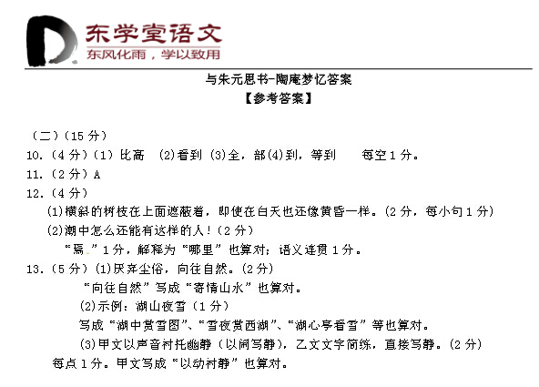 2015中考语文文言文与阅读复习:与朱元思书-陶庵梦忆(2)