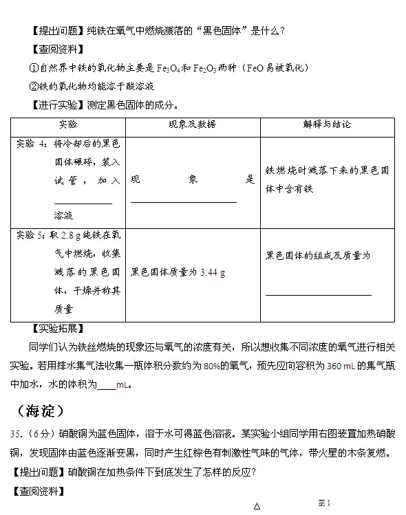 2015北京初三化学一模试题分类汇编——科学探究(3)