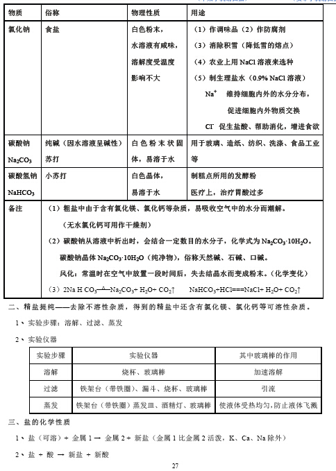 2017年北京中考化学知识点:十一单元 盐 化肥