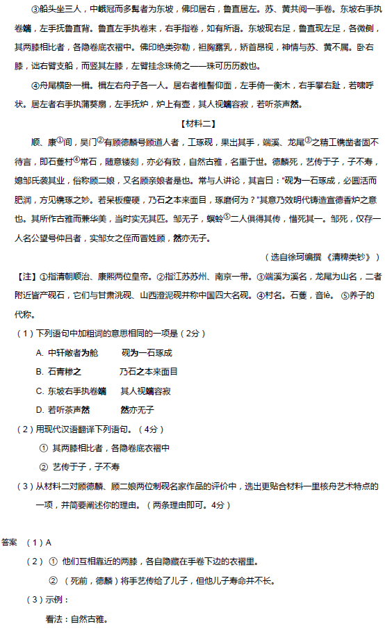 2017年北京中考语文模拟试题:文言文阅读题(4)