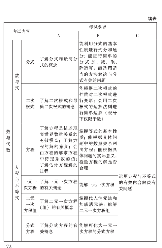 2017北京中考数学考试说明:考试范围及试卷结构(6)
