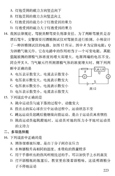 2017北京中考物理考试说明:考试参考样题(5)