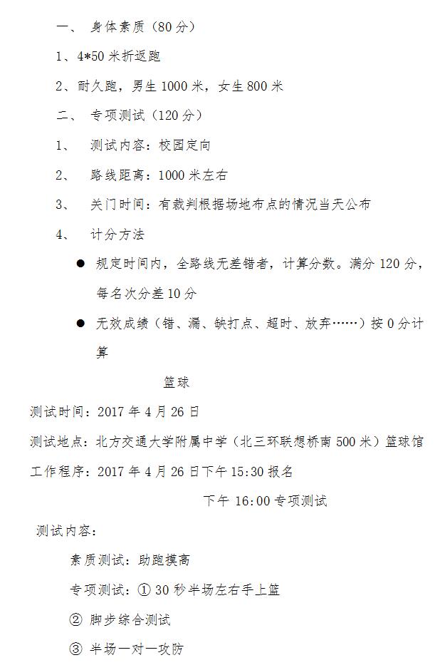 2017年交大附中招收初升高体育特长生测试方案(6)