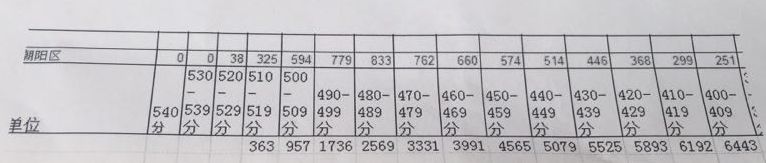 2016-2017学年北京朝阳区初三一模10分段表