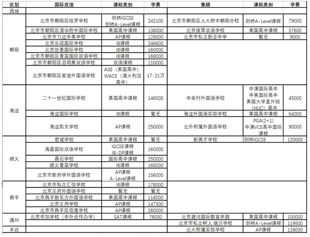 办学目的:公立校国际班,非盈利为目的办学。学费受到教育部严格管控。公立校国际班就算在北京,收费一般也不超过10万/年。而民办国际学校在北京,收费基本都会超过10万/年。收费价格见下表: