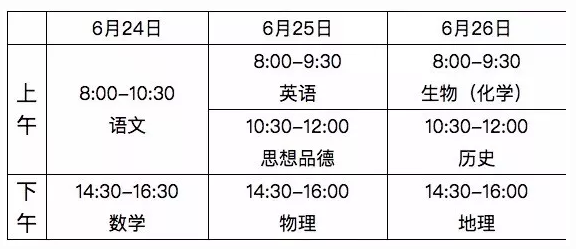 6月24日-26日为期三天,根据每个学生选科的不同,考试的时间也会不同。