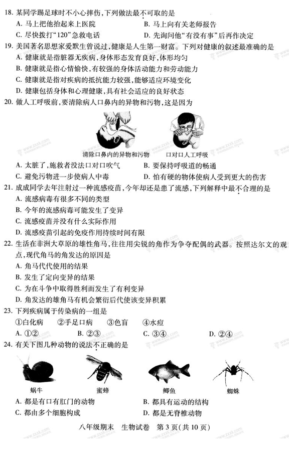 2017-2018学年北京西城区初二下学期期末生物试题(图片版)(3)