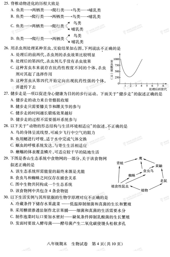 2017-2018学年北京西城区初二下学期期末生物试题(图片版)(4)
