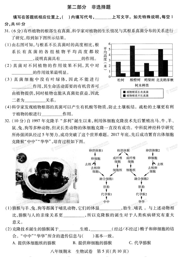 2017-2018学年北京西城区初二下学期期末生物试题(图片版)(5)