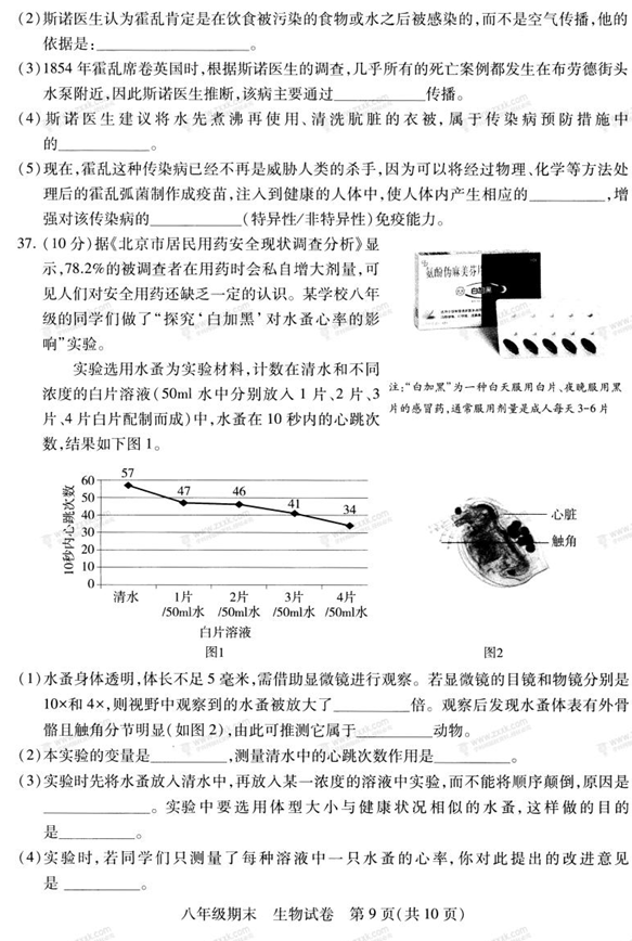 2017-2018学年北京西城区初二下学期期末生物试题(图片版)(9)