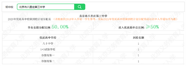北京朝阳区八里庄第三中学2020年校额到校计划